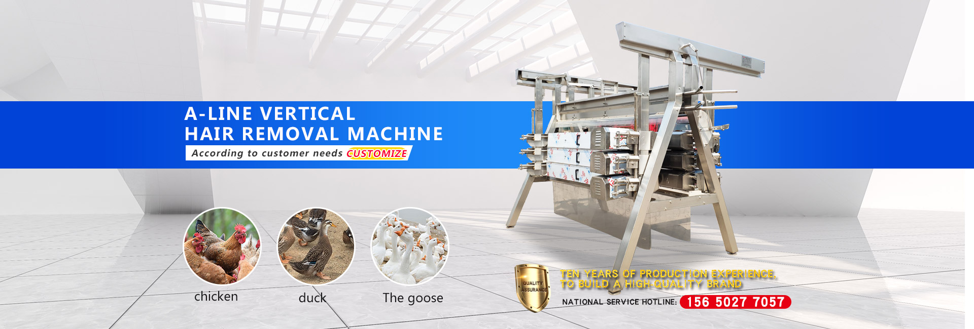 The company has been cooperating with domestic and foreign slaughtering and processing enterprises for a long time, taking the road of combining introduction, digestion, innovation and independent research and development, and constantly updating and reforming the similar products at home and abroad. The main equipment are: A type of vertical hair removal machine, horizontal hair removal machine, power spray machine, loose hair machine, hot bath, precooling, screw machine, bird cage cleaning machine, electric airsick......