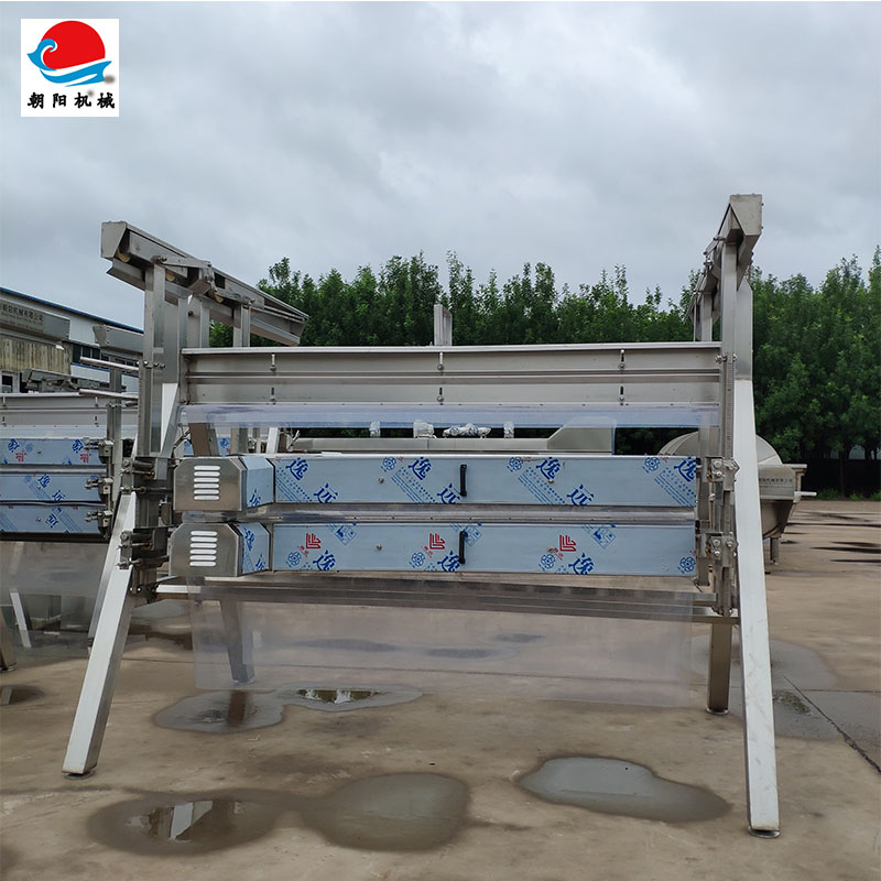 A字型立式精脫毛機(jī)的機(jī)架、外罩等全部采用不銹鋼材料制作而成,外觀整潔美觀大方。6排脫毛箱體,每排10只脫毛盤。2.2KW電機(jī)共6臺(tái)。箱體用δ=3.0㎜不銹鋼板制作,框架用90×90×3、100×50×3不銹鋼方管制作。脫毛盤軸設(shè)有兩道防水裝置。片基平皮帶傳動(dòng)工作時(shí),工作箱傳動(dòng)平穩(wěn),調(diào)整靈活便捷,升降機(jī)構(gòu)調(diào)整靈活方便,復(fù)位自動(dòng)對(duì)中,每排脫毛箱可以上下、前后、箱體角度三維調(diào)節(jié)便于車間日常的維護(hù)與清。導(dǎo)向機(jī)構(gòu)可使禽體順利進(jìn)入機(jī)體,并相對(duì)定位,沖洗機(jī)構(gòu)可隨時(shí)沖去脫掉的羽毛,促使設(shè)備及禽體安全衛(wèi)生,免于交叉污染。