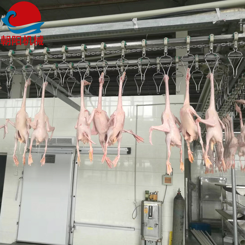 3)毛雞上掛間和屠宰車間嚴(yán)格分開,毛雞上掛間盡量設(shè)計(jì)陰暗,避免強(qiáng)光照射,造成毛雞拍打翅膀過度緊張。