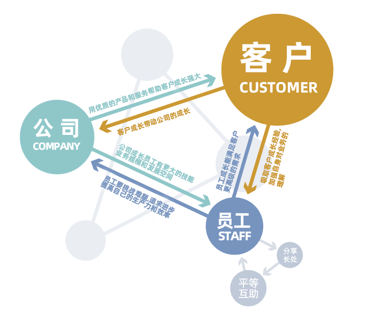 熱愛客戶 熱情 - 熱情服務(wù)每一位客戶 主動 - 積極主動為客戶解決問題 朋友 - 把客戶當(dāng)朋友,尊重客戶,幫助客戶成長 服務(wù) - 為客戶不斷提升服務(wù)意識 |